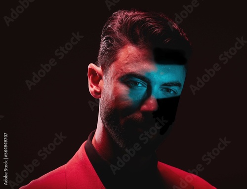art, neon, creative, portrait, man, beauty, studio, fashion, face, background, model, male, eye, blue, red, serious, dark, light, eye, male model, expression, light, futuristic, dark background, sexy, people, beautiful, isolated, hair, black, body, skin, night, fun, person, life, new, lifestyle, care, design, skincare, confident, professional, modern, clothes, luxury, designer, style