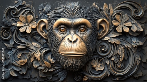 chimpanzee, art nouveau, flowing, line, intricate, pattern, wild, nature, decorative, elegant, ornate, illustration, artistic, stylish, graceful, refined, natural