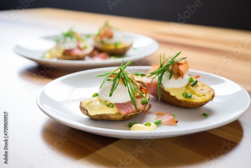artfully plated potato skins with a drizzle of aioli