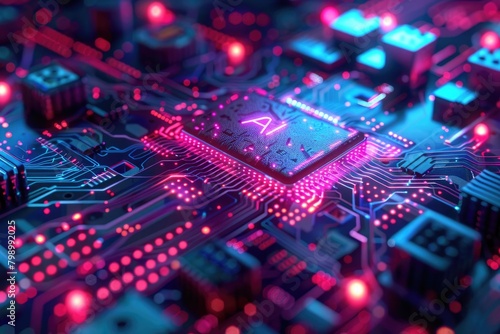 Artificial Intelligence (AI) concept, Abstract AI processor and quantum computer background.