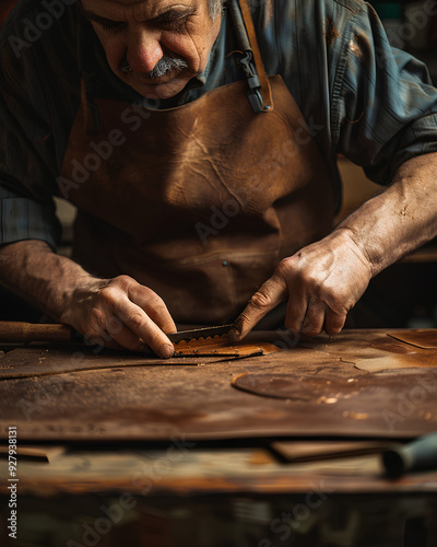 closeup, artisan, leather, good, traditional, craftsmanship, work, precision, care, hand, detailed, tool, workshop, hand-made, creative, skilled, trade, material, craft, artistry, design, heritage, sharpened, dedication, texture, rustic