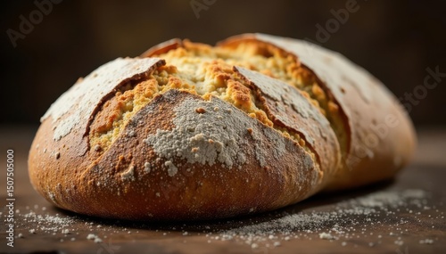 Artisanal sourdough bread, crusty exterior, airy crumb , studio, rustic