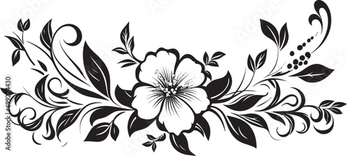 Artistic Botanicals Black Vector Floral Design Hand Drawn Garden Floral Logo in Black