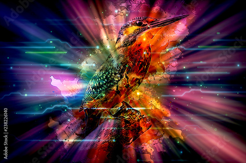 Artistic Colorful Glowing Bird In a Visualized Colorful Background