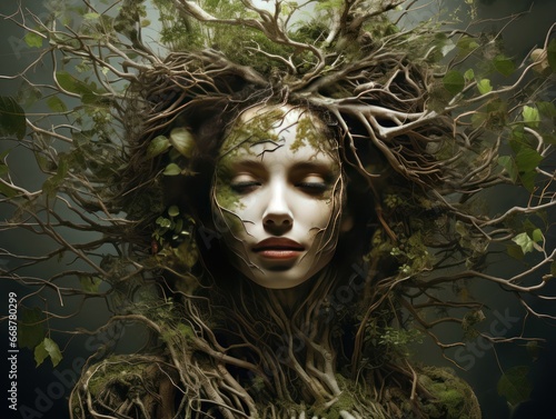 young, nymph, lady, hair, dream, artistic, forest, glamour, face, woman, magic, art, model, black, make-up, dark, fantasy, colourful, coiffure, conceptual, mysterious, style, concept, attractive, cute, paint, fairy, female, season, beauty, mystical, nature, flower, romantic, person, creativity, red, summer, fashion, symbol, girl, pretty, luxury, make-up, design, dress, elegance, green, sensuality