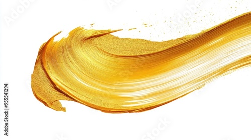 Artistic gold paintbrush stroke with a smooth, flowing texture on a bright white background