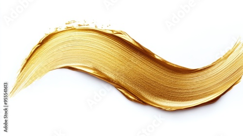 Artistic gold paintbrush stroke with a smooth, flowing texture on a bright white background
