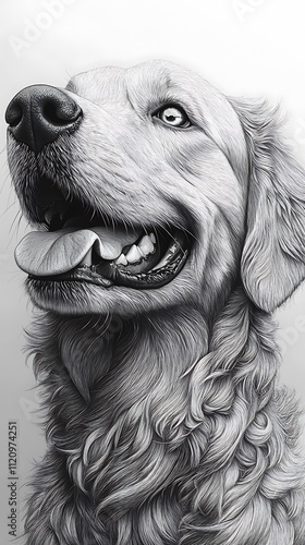 Artistic illustration displaying a golden retriever captured perfectly in black and white art details picture