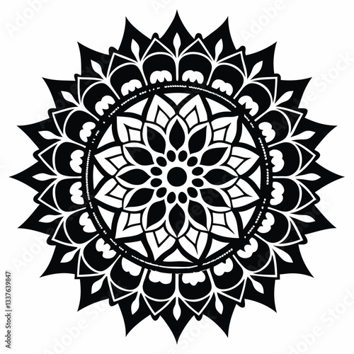 mandala, vector, silhouette, design, black, white, intricate, geometric, pattern, art, decorative, circular, symmetry, ornamental, abstract, floral, detailed, zen, meditation, bohemian, spiritual, ethnic, cultural, tattoo, henna, radial, symmetric, artistic, graphic, illustration, monochrome, aesthetic, elegant, beautiful, unique, creative, stylish, modern, traditional, contemporary, timeless, clean, isolated, high-quality