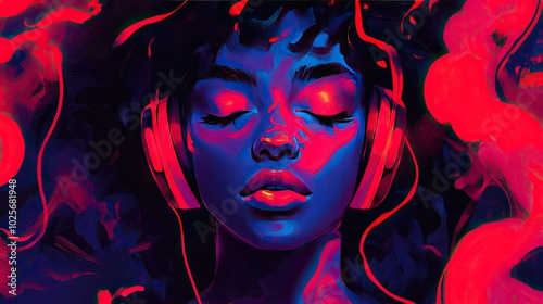 Artistic Portrait of a Woman Listening to Music on Headphones