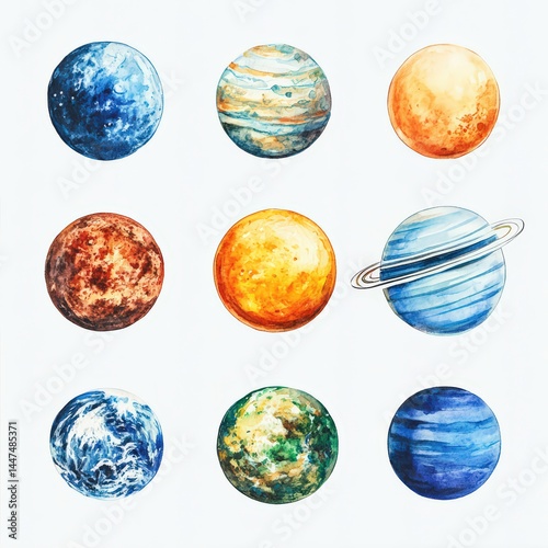 planet, watercolor, space, celestial, illustration, art, solar system, astronomy, colourful, creativity, design, decoration, planet, nature, cosmic, background, scientific, texture, star, universe, blue, orange, green, brown, ring, surface, atmosphere, artistic, vibrant, exotic, round, science, orbit, education, print, modern, creative, visual, aesthetic, detail, concept, fantasy, beauty, shape, imagination, planetarium, orbital