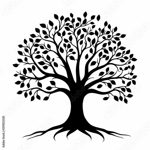 Artistic Tree Silhouette: A Botanical Design Showcasing Natural Beauty and Ecological Symbolism