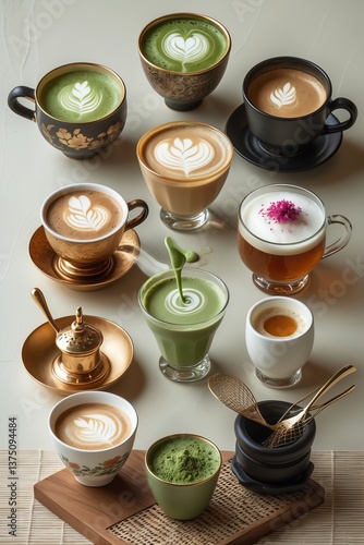 Artistic Variety of Coffee and Tea Beverages with Latte Art Presentation