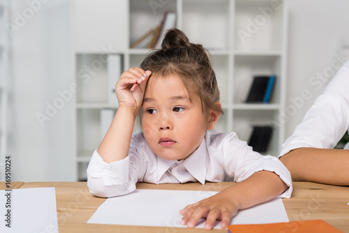 beautiful, person, female, people, children, little, childhood, to sit, children, adorable, draw, drawing, indoor, crayons, attractive, sorrowful, sad, upset, bored, preteen, asian girl
