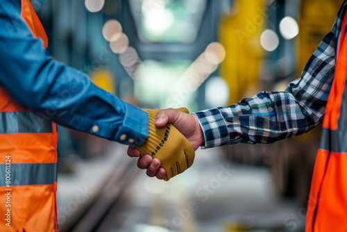 Asian engineers shake hands after successful construction project