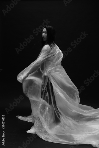 performance, fashion, conceptual, stylish, concept, style, clothing, studio, cape, shadow, brunette, robe, black-and-white, portrait, attractive, pollution, attitude, poetic, asian, plastic, asian, planet, artistic, performer, artificial, movement, art, monochrome, apparel, model, abstract, man, indoor, indoor, human face, photogenic, hair, gown, glamour, fine, environment, elegant, dress, long hair, dark, visual, dancing, dancer, transparent, dance, toxic, creative, synthetic, contamination, surreal, male, person, people, adult, adult, 20s, grown-up