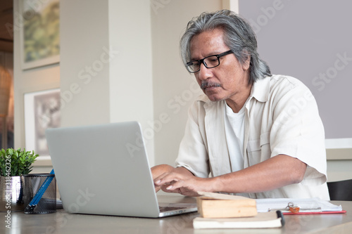 60s, asia, one person, active, adult, aged, asian, book, business, businessman, casual attire, chair, communication, computer, connected, connection, desk, elder, elderly, eyeglass, grey hair, happy, healthy, home, cyberspace, keyboard, laptop, leisure, lifestyle, male, man, network, notebook, online, people, person, retired, retirement, room, senior, sitting, table, technology, typing, web, work, working
