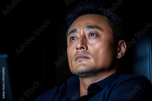 Asian White-Collar Worker, Working Late At Night, Office Dimly Lit