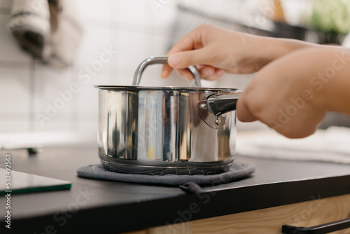 kitchen, cooking, food, pot, stove, hot drink, pan, cook, home, drink, eatery, cafes, pot, steel, cup, preparation, water, tea, preparing, metal, hand, pan, fresh, making