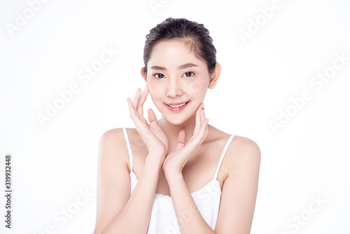 Asian woman poses for healthy skin beauty in white isolated background. Cosmetic, skincare, surgery concept