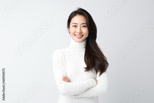 woman, smile, asian, asian woman, smiling, happy, portrait, japanese, chinese, korean, white, background, turtleneck, solid, 30s