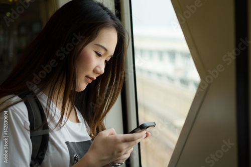 holiday maker, smartphone, booking, travel, woman, asian, hotel, holiday