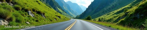 Asphalt ribbon winds through verdant mountain pass , trees, scenic