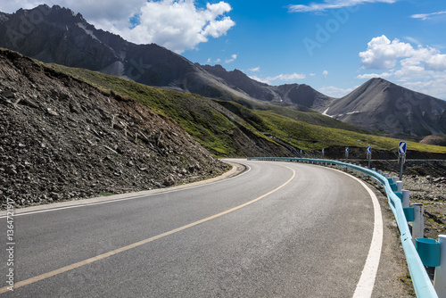 countryside, asphalt, road, mountain, natural, landscape, summer, nature, sky, cloud, car, background, travel, vacation, nobody, empty, hill, journey, transport, street, texture, ground, way, highway, beautiful, country, environment, transportation, blue, meadow, park, holiday, famous, range, tour tourism, direction, day, china, trip, drive, high, curve, green, grass