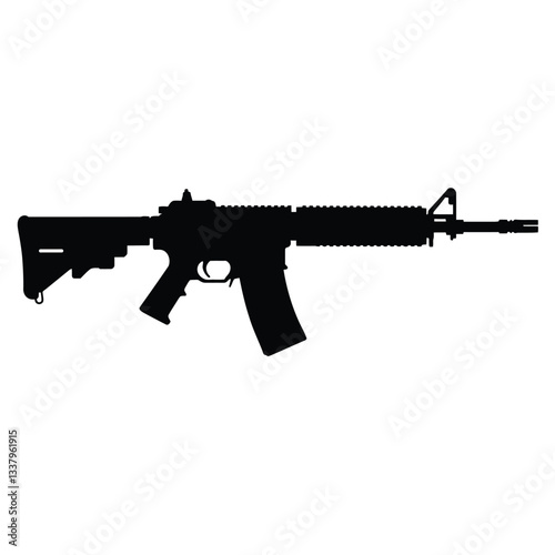 gun, weapon, rifle, military, isolated, war, army, machine, automatic, black, white, vector, shooting, sharpshooter, handgun, illustration, handgun, metal, assault, arm, barrel, danger