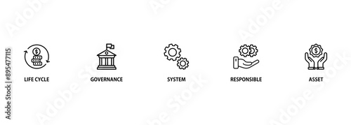 Asset management banner web icon vector illustration concept with icon of asset, life cycle, system, responsible and governance