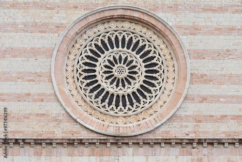 Assisi Santa Chiara Basilica Facade Rose Window Detail, Italy