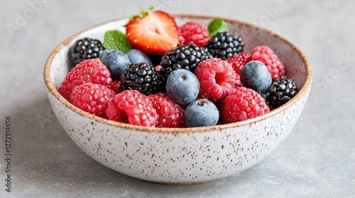 Assorted Berries in Bowl on Gray Surface. Possible Use Stock Photo for food articles or healthy eating