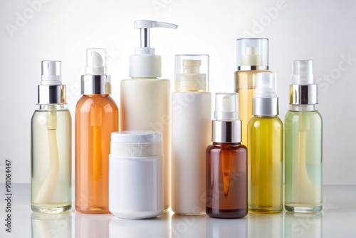 Assorted bottles of skincare toner products with different labels and packaging lined up on a white background, Indonesia.