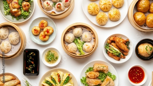 Assorted Chinese Dumplings and Fried Dishes with Sauces