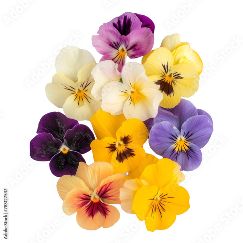 Assorted Colorful Edible Pansy Flowers Arranged Beautifully, Highlighting the Concept of Culinary Elegance and Natural Ingredients.