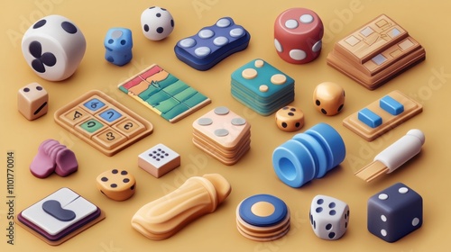 dice, game, board, piece, colourful, assorted, yellow, background, blue, red, brown, beige, orange, white, black, green, purple, gold, wooden, plastic, texture, smooth, round, square, rectangular, stack, pile, set, collection, variety, design, illustration, render, three-dimensional, object, toy, play, fun, casual attire, family