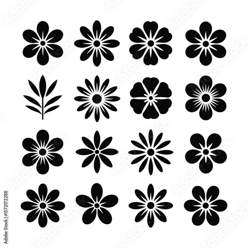 floral, leaf, silhouette, icon, set, flower, bloom, plant, nature, garden, spring, summer, decorative, ornament, graphic, element, design, collection, illustration, vector, black, white, simple, minimalist, abstract, stylised, natural, organic, beauty, elegance, art, pattern, wallpaper, background, tattoo, stencil, cutting, wedding, invitation