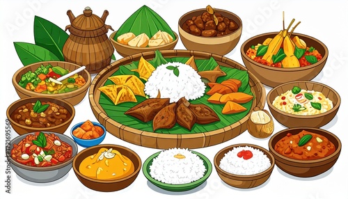 food, indian, dish, rice, curry, vegetable, meat, spice, cookery, tray, bowl, plate, potato, bean, gravy, meatball, fried, dumpling, dessert, sweet, sauce, condiment, beverage, drink, healthy