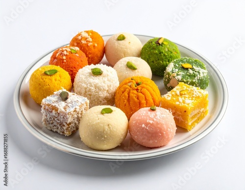 Assorted Indian Mithai on Silver-Rimmed Plate
