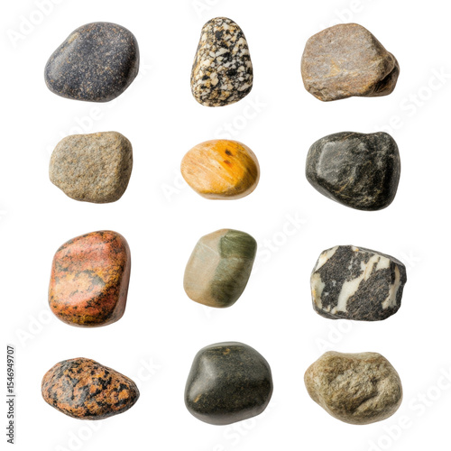 Assorted Natural Stones and Pebbles on White Background