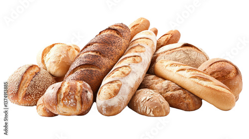 Assortment of breads, bagel, baguette, and sourdough,Transparent background, PNG file,