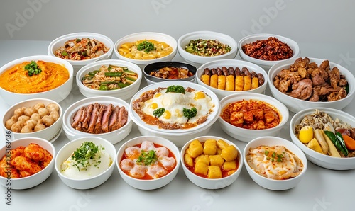 chinese, food, dish, table, white, bowl, assortment, variety, colours, texture, meat, vegetable, sauce, spice, appetiser, main, course, cookery, culinary, epicure, delicious, tasty, flavorful, spicey, sweet, savoury, fresh, healthy, alimentary, dinner, lunch, meal, eatery, dining, gastronomy, culture, tradition
