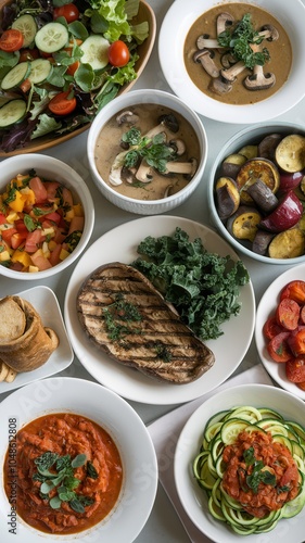 Assortment of Colorful Vegan Dishes on Dining Table for Buffet