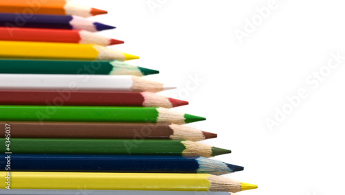 Assortment of coloured pencils isolated over white