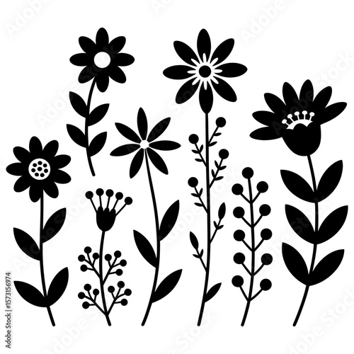 flower, floral, plant, nature, black, white, illustration, design, decorative, graphic, botanical, vector, art, drawing, silhouette, element, symbol, icon, spring, summer, garden, leaf, stem, blossom, bloom, artwork, clip art, simple, isolated, floral pattern, natural, organic, foliage, wildflower, daisy, abstract, monochrome, minimalist, line art, botany, herb, decoration, ornament, pattern, background, template, graphic design, flower