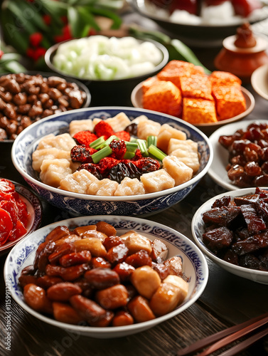 Assortment of Traditional Sweets and Snacks in Bowls for Festive Celebration : Generative AI