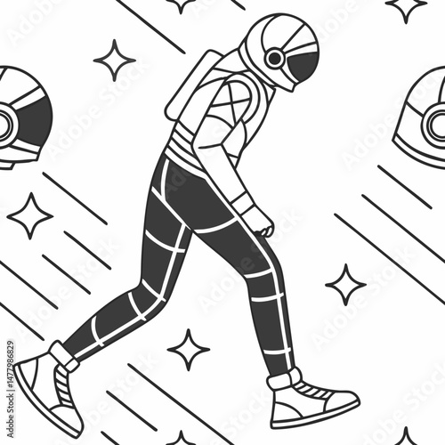 astronaut, walking, space, seamless, vector, pattern, star, helmet, design, illustration, cosmos, graphic, minimal, black, white, retro, futuristic, travel, adventure, exploration, outer, universe, science, technology, symbol, character, motion, style, artwork, modern, creative, digital, graphic, monochrome, movement, unique, concept, background, fun, playful, lifestyle, cool, trend, inspiration, decoration, print