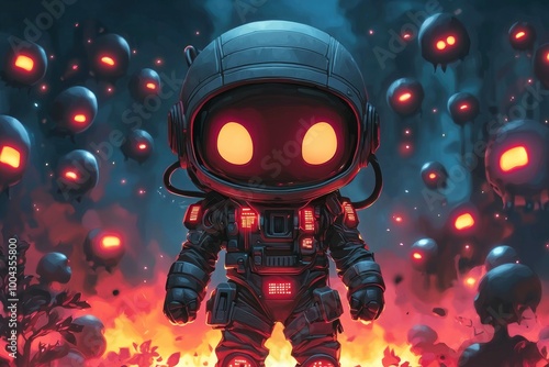Astronaut with Glowing Eyes in a Surreal Landscape