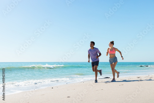 two people, young adult, man, male, multiracial, woman, female, white, people, beach, diverse, couple, running, enjoying, time, together, short, black hair, sporting, ponytail, dressed, laughing, human relationships, sea, ocean, family, friends, coast, sand, love, vacation, smiling, happiness, friendship, activewear, physical exercise, fit, leisure, happy, lifestyle, fun, athletic, active, cheerful, fitness, togetherness, young