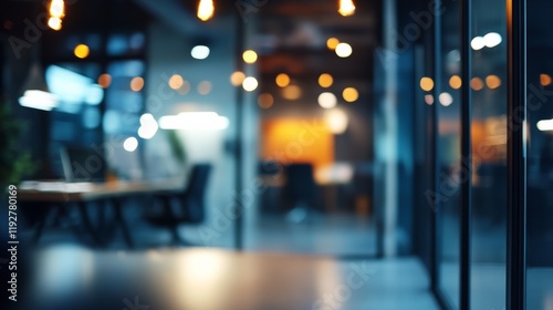 at night beautiful Abstract blurred office interior room. blurry working space with defocused effect